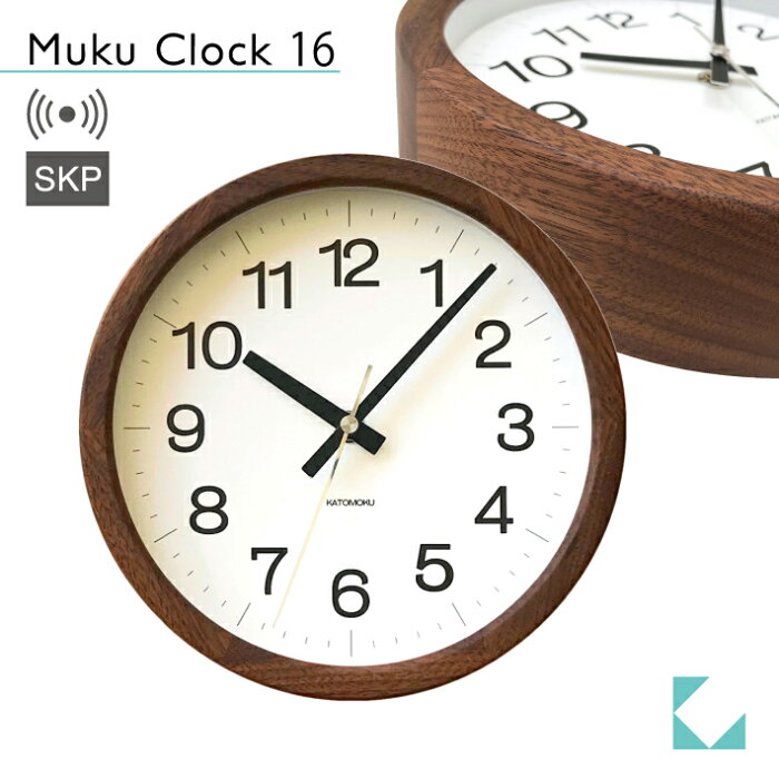 KATOMOKU muku clock 16 SKP ウォールナット km-108WARCS SKP電波時計 連続秒針 掛け時計