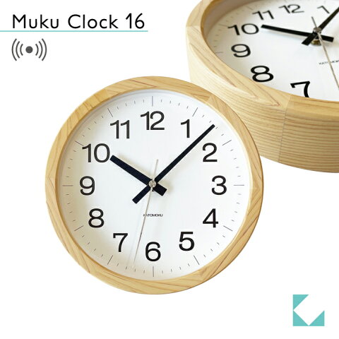 KATOMOKU muku clock 16 岐阜県産ヒノキ km-108HIRC 電波時計 連続秒針 掛け時計 小さいサイズ